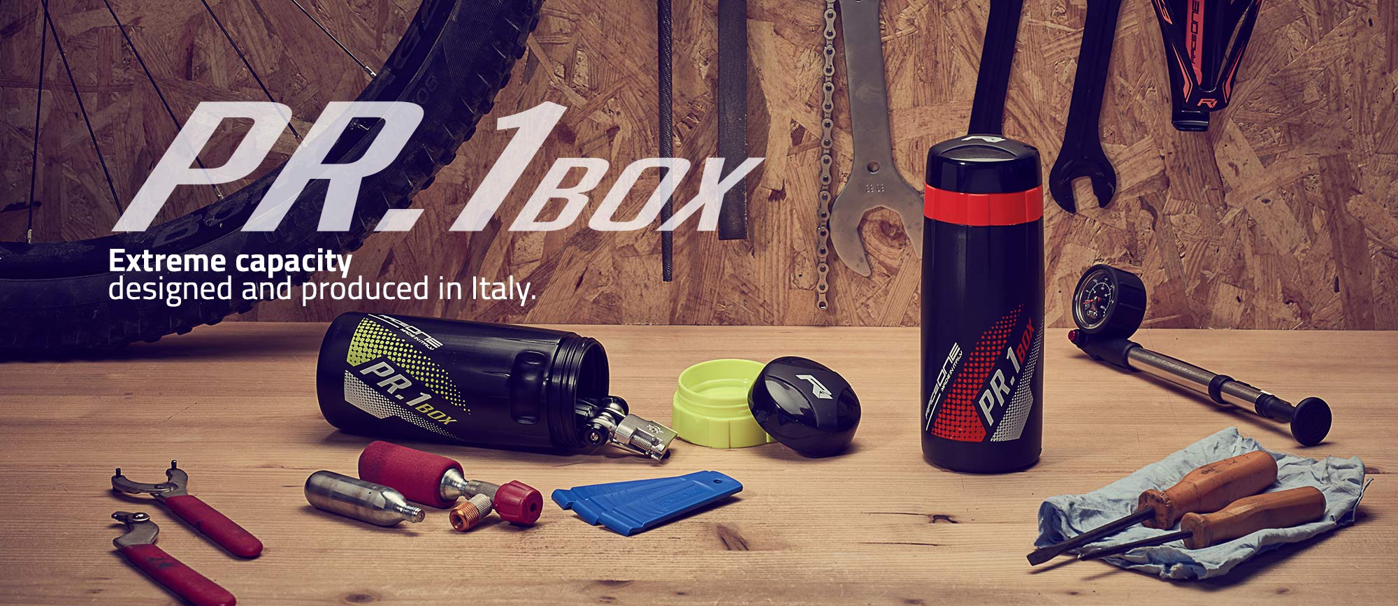 Bottle Toolbox PR.1 PATENTED Raceone® proves to have high capacity, flexibility and design.