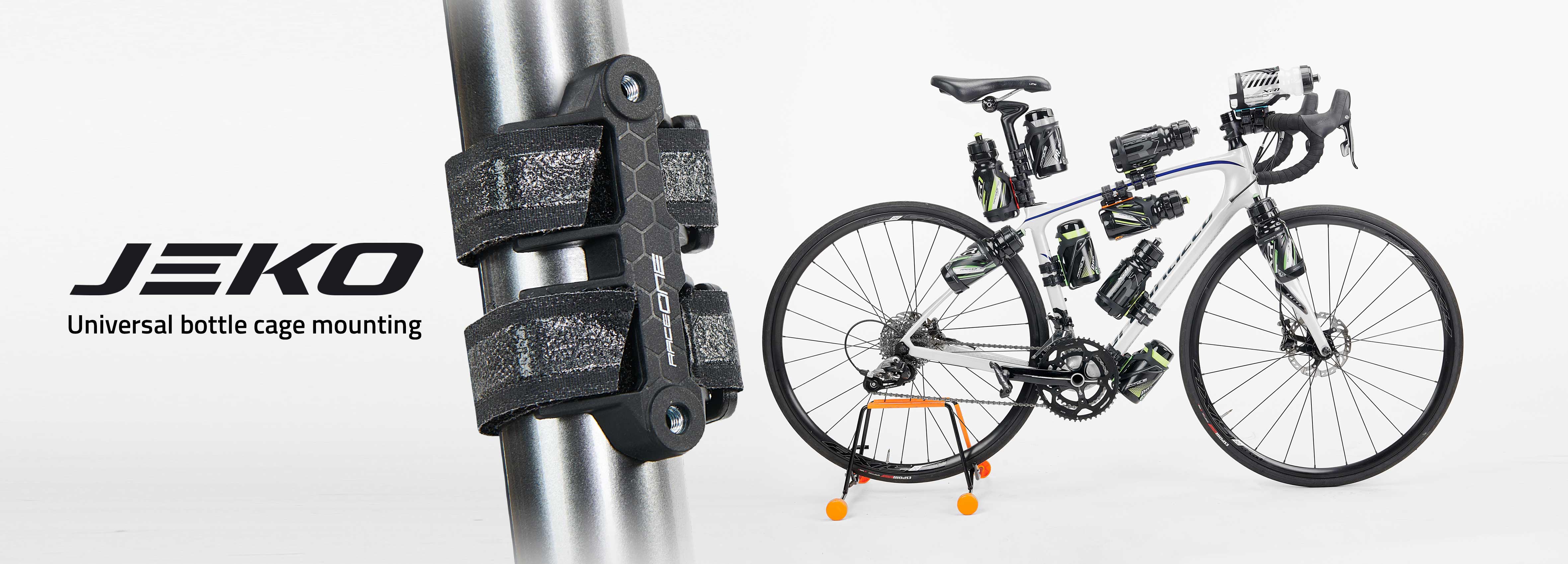 Raceone® Jeko, universal bottle cage mounting!